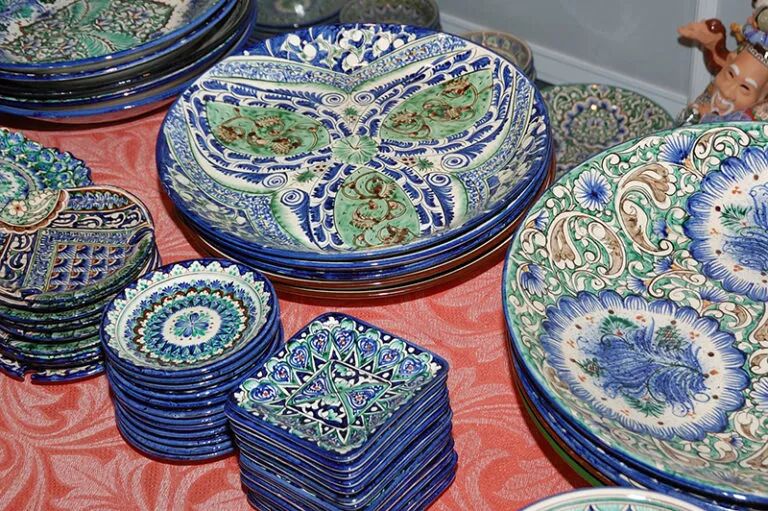 乌兹别克斯坦陶瓷艺术的名片,是里什坦陶瓷,主要生产于费尔干纳河谷南部小城里什坦——中亚地区最大的釉面陶瓷制造中心。