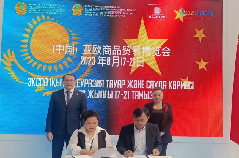 8月18日新疆中亚互联孵化器有限公司董事长塔拉甫汗·帕提汗、中亚互联(西安)商务服务有限公司总经理范小博、哈萨克斯坦《EcoFood》有限责任公司总经理努尔古丽·达乌列特库洛娃一同参加2023(中国)亚欧商品贸易博览会。《EcoFood》有限责任公司与我司已经在产品进口领域达成合作意向,并在展会现场签订产品供应合同。
